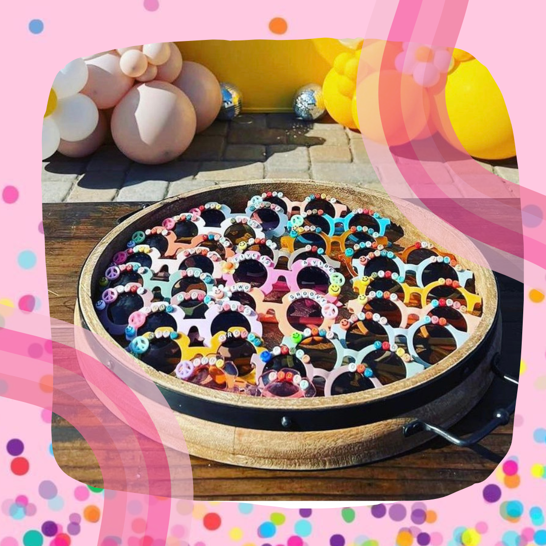20 party favor sunnies plus 1 custom pair for the birthday babe!